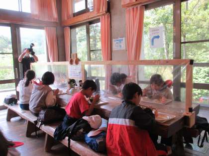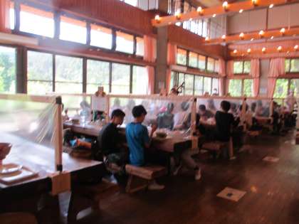 広々とした食堂で昼食をとりました。おうどんだけで足りない人は、ご飯も食べました。
