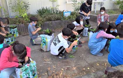 今日は,協力いただいている企業の方に来ていただいて,大根の苗の間引きを行いました。順調に育ちつつある大根の中から特によいものを選び,さらに大きくおいしく育てるための大切な作業です。