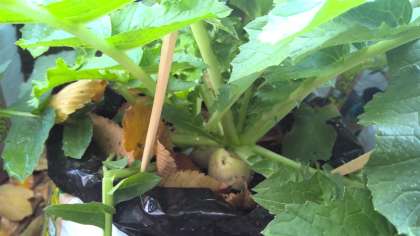 土の中の様子が気になっていたら,とうとう大根の形が見えてきました。まだまだ細いですが,どれくらい太くなるかととても楽しみにしています。