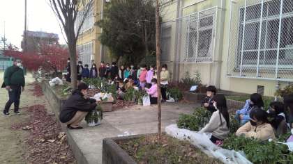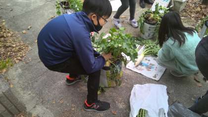 いよいよ3か月ほどかけて育ててきた大根を収穫する時がやってきました。大小様々でしたが、ようやく収穫できたことに子どもたちはとても喜んでいます。また、野菜を育てる苦労と達成感を知り、大根栽培を通じてよい学びになったように思います。