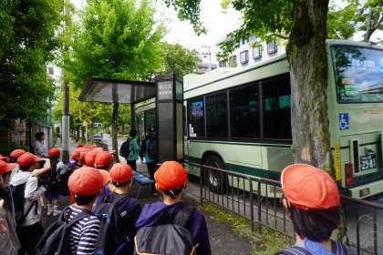 京都市バスに乗って、京都駅ビル・梅小路公園へと向かいました。