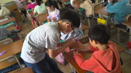 5月15日(月)、修学旅行に向けての折り鶴集会がありました。広島の平和記念公園で行われる平和集会で今回折った折り鶴を持っていきます。そこで1年生から5年生までに6年生が鶴の折り方を教えに行きました。グループに分かれて「ここはこう折るんだよ」「上手上手!いい感じ!」と温かく教えている6年生がとても素敵でした。30日(火)にみんなに折ってもらった折り鶴を広島に持っていきます。少しでも世界が平和になりますように。