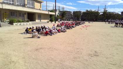 体育発表会本番では見られない、5・6年生の団体演技を見せてもらいました。