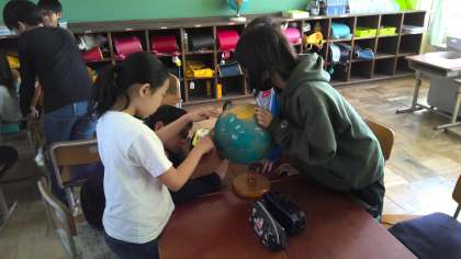 また、どこにどの国があるのかクルクル回しながら調べ学習もしました。