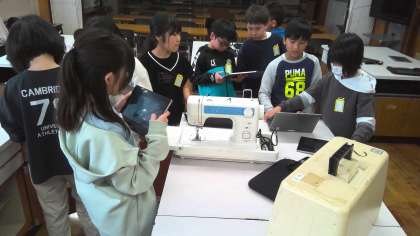 家庭科の授業で、家庭科室に何があるのかタブレットで写真を撮りながら確認しました!