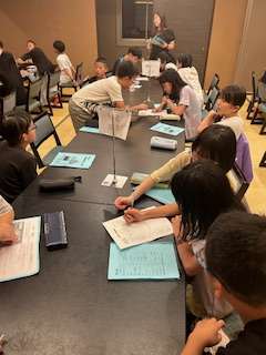 1日の活動を振りかえっています。楽しかった1日目の活動が終わりました。