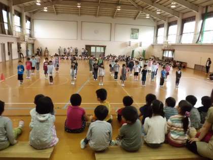 外は,あいにくの空模様でしたが,紫竹校の体育館は笑顔いっぱいの快晴でした。