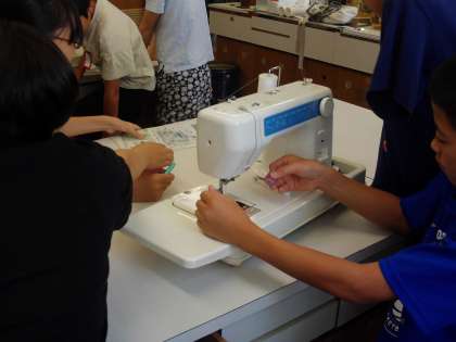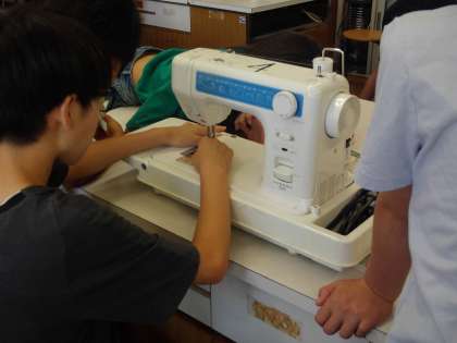 6年生は家庭科でミシンの使い方を学習しています。今日はミシンに糸を通しました。細い糸を小さな穴に通すことに苦戦していました。班のメンバーと協力して糸を通すことができました。