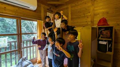スコアオリエンテーリングのあと、寝具準備をし、入浴の時間まで休憩しました