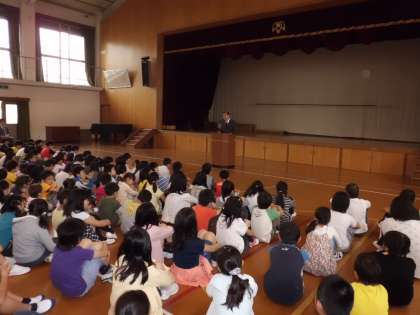 校長先生から,「聞くこと」「目標にむかって」「あいさつとそうじ」「校時表の変更」「安全」についてお話がありました。