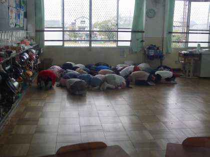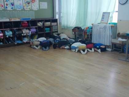 避難訓練(防犯)を行いました。どのクラスも机を扉の前に移動させ、素早くそして静かに避難し、担任の指示を聞いていました。今日訓練したことを忘れず、日頃から人の話をよく聞いて行動することを心がけられるといいですね。