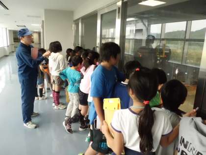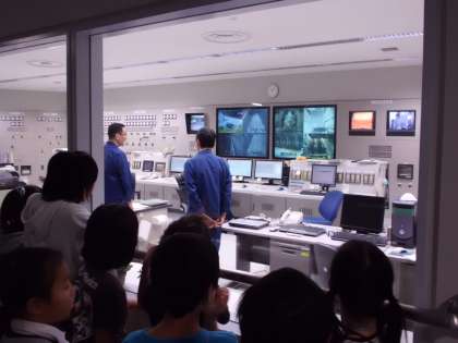 ごみの燃焼熱で発生させた蒸気によってタービン発電機を回転させ,最大15,000KWの発電を行う発電システムや,クリーンセンター内の全ての設備の運転状況を集中監視しているいること,大型の装置についての説明など熱心に説明を聞き,見学をしていました。
