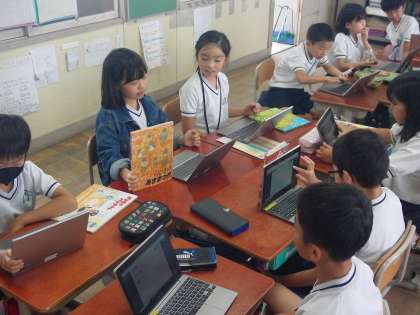 今日は、グループでおすすめの1冊を決めるため、司会係・記録係・時間係の役割に分けて話し合いをしました。時間配分に気を付けたり、司会係がうまく進行したり、出た意見を記録したりして、グループで決めた1冊をロイロノートのカードに書きました。