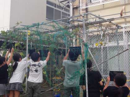 理科の授業で、学校で育てている植物の観察をしました。
