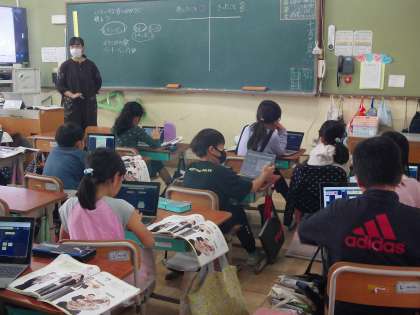 今日の音楽の授業で、いろいろな楽器の音を聞き、「感じたこと」と「聞いたこと」をタブレットでまとめました。