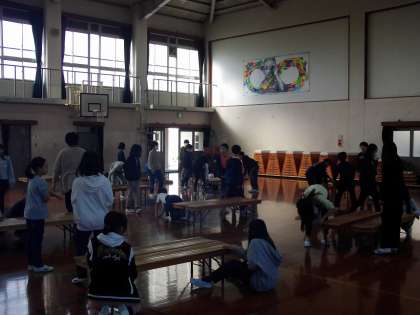 明日の選書会のため5年生が机を準備をしてくれました。