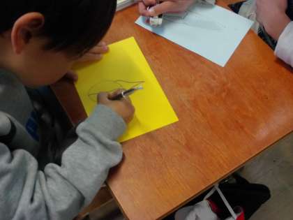 色画用紙を好きな形に切って、メダルを作ります。どれも素敵なメダルになりそうです。