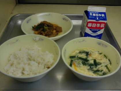今日の献立は、麦ごはん・肉みそいため・酸辣湯・牛乳でした。