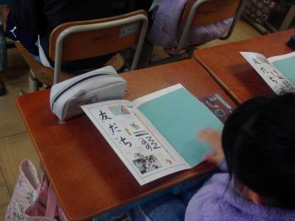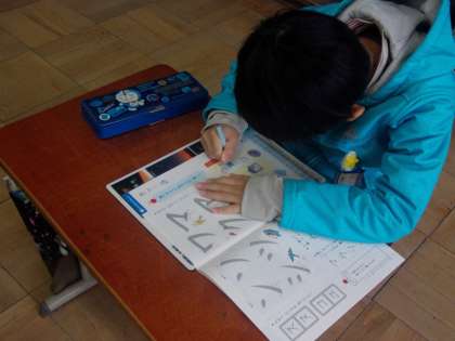 今日の書写では、えんぴつで教科書の文字を「とめ」や「はらい」に気をつけてなぞりました。姿勢を正して、丁寧に一文字一文字書きました。