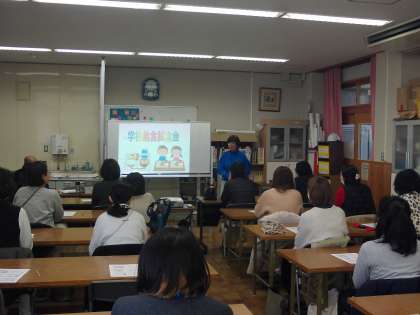 給食試食会を実施しました。参加された保護者の方は、栄養教諭の先生から給食の役割などを聞いたあと、お箸の使い方を実践したり、子どもたちが教室で給食を食べる様子を参観したりしていただきました。参観後は今日の給食の「ごはん・すき焼き風煮・たたきごぼう・牛乳」を試食していただきました。PTAの皆さんには運営にご協力をいただきました。ありがとうございました。