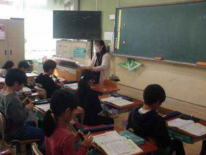 「後半に少しテンポがはやくなっているから、気をつけて。」という先生のアドバイスや、高い音・低い音に気をつけて練習を繰り返したあと、先生のピアノ伴奏に合わせて演奏しました。
