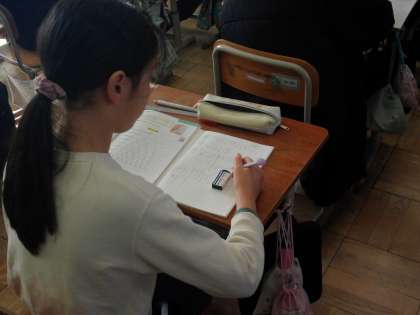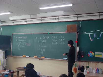 算数で分数を学習しています。今日は、帯分数のある計算をしました。
