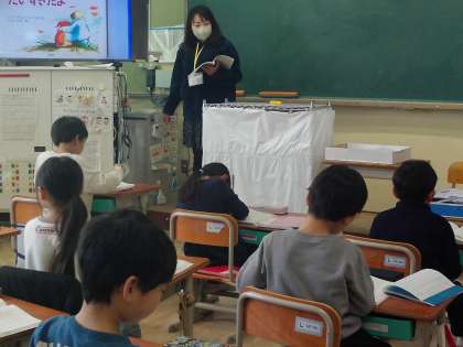 1年生は国語で物語の学習をしています。『ずうっと,ずっと,大すきだよ』という作品を読んでいます。今日は物語の「すてきだな。」「どうしてかな?」と思うところを見つけました。しっかりと作品を読み,たくさんの素敵なところを見つけることができました。また,絵本と教科書の違いにも気づくことができました。