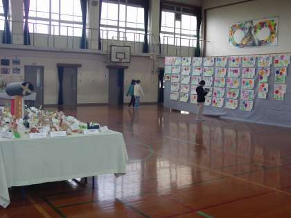 クラスごとに作品を鑑賞しに行っています。自分たちの学年だけでなく、ほかの学年の作品も興味深く熱心に鑑賞していました。