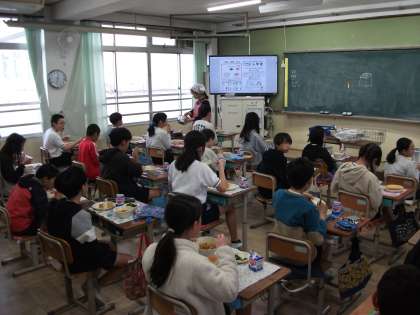 今日から楽しみにしていた給食が始まりました。「おいしいなあ」「もっと食べたいなあ」の声、みんなしっかりと食べていました。