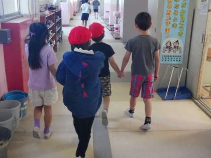 1年生と2年生でペアになって、学校たんけんをしました。