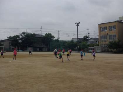 チームに分かれてタイムをはかりました。コーナーでラインからはみ出さないように走ったり、走る順番を変えたりして、いい記録が出るように挑戦しました。