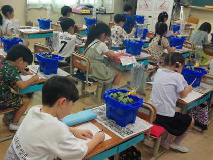 色やかたちを見たり、優しくさわってみたりして、じっくり観察しました。