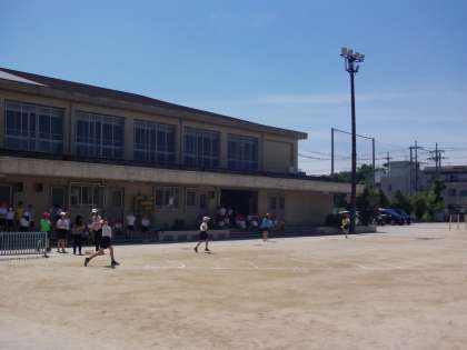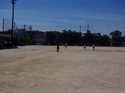 線を踏まないように気を付けて、力いっぱい投げました。ボールが遠くまで飛んだときには、「おお!」と歓声があがっていました。