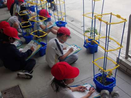 自分たちで植えた夏野菜の観察をしました。