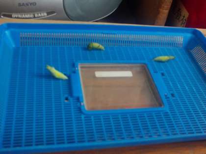 アゲハチョウの幼虫は、3匹ともサナギになりました。