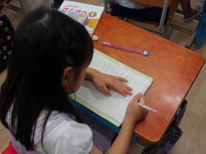 式の書きかたや答えの前に「=」を書くことを思い出したり、すうずブロックを使ったりして、ノートに書きました。