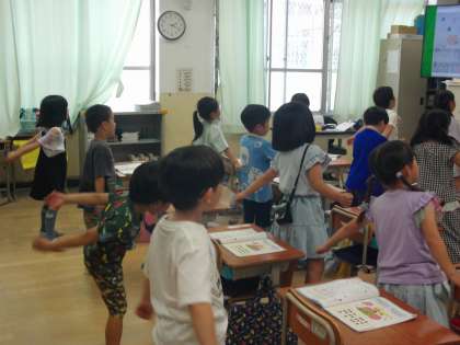 前後に手をふったり、からだをゆらしたりして、全身で元気に歌うことができました。
