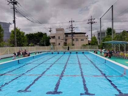 着替え、シャワー、バディ確認などプールの入り方も頑張っています。今日はじゃんけん、あひる歩き、宝探しなどの水遊びを楽しみました。