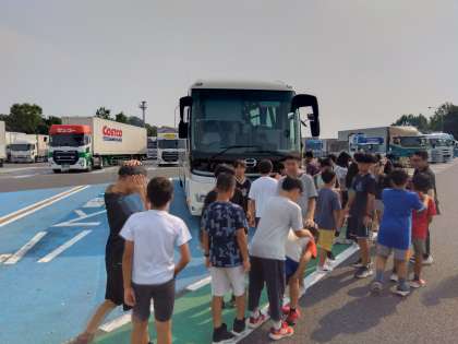 最終のトイレ休憩をしました。順調に移動していることから学校到着は早くなり17時頃を予定しております。