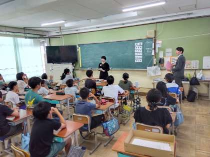 上京税務署の宮崎様と税理士の竹内様、有田様にお世話になり、租税教室を行いました。税金の意味や税金によって住みよい暮らしが成り立っていることなどを学びました。また、1億円分の紙幣と同じだけのかさと重さのジュラルミンケースを実際に持たせてもらいました。とても重かったようです。