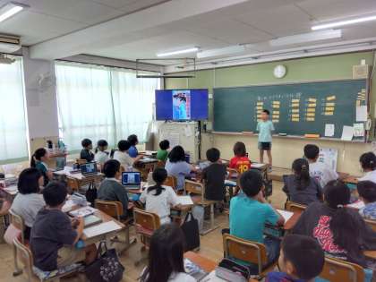 読書好きの5年生、たくさん読んでいる本の中で、自分が紹介したい本のよさや面白さをクラスのみんなに伝えるビブリオバトルをしました。みんなに向けて質問をしたり、意見を求めたりとそれぞれが工夫して発表して、やり取りを楽しみました。ここでも「会話のキャッチボール」が生かされていましたね。