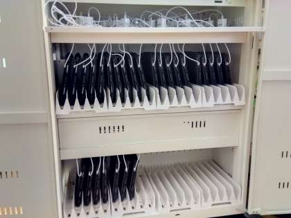 夏休みに2ndGIGA端末が各学級に納品されました。先週末には2学期に向けた準備として2年生から6年生までの2ndGIGA端末の設定作業を教職員でしました。1年生はすでに1学期の終わりに設定をしました。各学年、2学期からは新しいGIGA端末で学習していきます。2学期の始まりが楽しみです。
