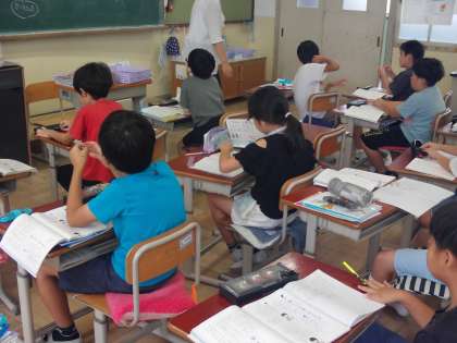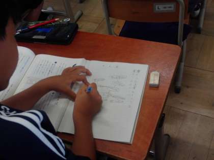 前回の授業で、「夏の思い出」について思いついたことを線でつないで書き出しました。