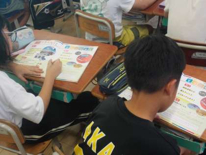 今日はスーパーマーケットライフの方に出前授業に来ていただき、海洋ごみ・地球温暖化・食品ロスについて、いっしょに考えました。