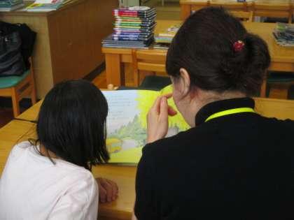 図書館で司書の先生に読み聞かせをしてもらいました。自分で読んでほしい本を選び、楽しそうに聞いていました。