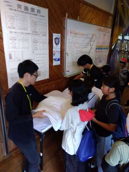生活係がグループのみんなのシーツを受け取り、宿泊棟に向かいます。部屋に入り荷物整理と休憩です。