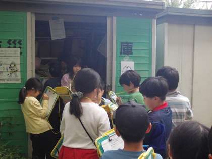 校内にある5つの防災器具庫を見て回り、器具庫内にある物品等を調べました。