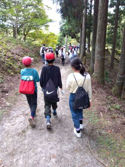 帰りのバスの中、子どもたちは元気におしゃべりの花を咲かせていましたが、疲れて寝てしまった子どももいます。昨晩のキャンドルファイヤーでは、花背の山の神、火の神から「挑戦」「協力」「感謝」の火を渡された5年生、山の家では協力して支え合わないとできない活動が多いのですが、5年生は持ち前のパワーと優しさを発揮し、楽しく、みんなで支え合いながら取り組めました。また、多くの方々から褒めていただきました。子どもたちも体感したと思います。「同じ釜の飯を食う」という言葉があります。同じ場所で寝食を共にすることで、強い仲間意識や一体感が生まれる意味の言葉です。私や教職員には5年生のパワー、素敵さ、成長を感じた活動なりました。お家での準備等でのご理解、ご支援、感謝いたします。ありがとうございました。今回の宿泊学習ではお土産はありませんが一番のお土産は無事に元気に帰ることかと存じます。ぜひ成長している子たちの自慢話、思い出話を聞いていただければ幸いです。その際「会話のキャッチボール」(子どもたちは知っています)を使っていただければ嬉しいです。引き続きどうぞよろしくお願いいたします。文責:校長