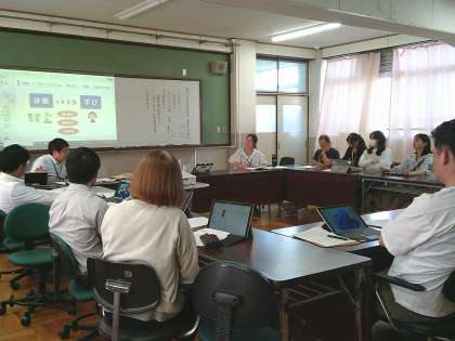 5年生の公開授業を本校教職員が参観しました。子どもたちは総合的な学習の時間に、自分たちの考えた起業に向けて、改善点について考えを深め話し合いました。教職員は参観の後、事後研究会を行いました。4つのグループに分かれ子どもたちの学びを振り返りました。また、この授業に関わってくださった総合教育センターの首席指導主事の先生からは子どもの頑張りや指導方法などについて指導講評をいただき、今後の校内研究の示唆をいただきました。