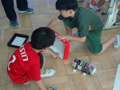 ふりかえりをもとに、タイヤを補強したり、得点表を作ったり、新たに1つおもちゃを作ったりしました。
